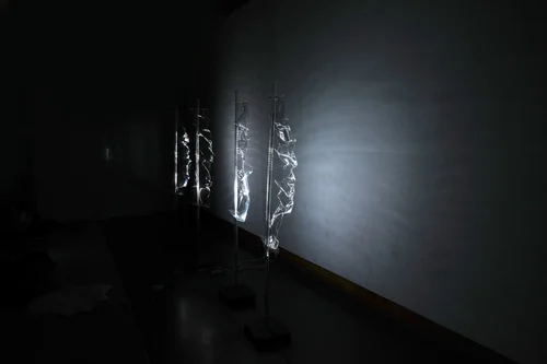 This installation utilizes the physical attributes from Dissolve, by allowing the acrylic screens to play with light in order to achieve the opposite effect of its predecessor. While Dissolve focused on soothing, Amplify seeks to excite.